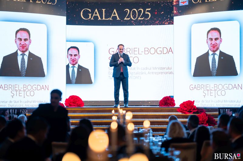 Ziarul BURSA a reuşit, în cei 35 de ani de activitate, să fie un partener atât pentru mediul de afaceri, cât şi pentru relaţia acestuia cu administraţia locală şi centrală, consideră Bogdan Şteţco, secretar de stat în cadrul Ministerului Economiei, Digitalizării, Antreprenoriatului şi Turismului (MEDAT), care a apreciat publicaţia noastră: "Mă bucur să fiu prezent la acest eveniment, întrucât consider că ziarul BURSA nu este un simplu ziar. Cred că aţi reuşit, în aceşti 35 de ani, să fiţi un partener atât pentru mediul de afaceri, cât şi pentru relaţia mediului de afaceri cu administraţia locală sau centrală. Vă felicit pentru că aţi reuşit să fiţi un catalizator! Vă felicit pentru că aţi reuşit în cei 35 de ani de activitate să organizaţi dezbateri importante şi să ancoraţi, pe cât se poate, autorităţile, dar şi mediul antreprenorial, în a înţelege toată dinamica aceasta a schimbărilor pe care le trecem. E mai mult decât o bucurie şi sunt sigur că în continuare veţi avea, ca şi până acum, această determinare şi veţi reuşi să daţi pe mai departe tot ceea ce ţine de activitatea aceasta economică şi de dezvoltarea mediului antreprenorial. Vă felicit pentru activităţile de inovare pe care le faceţi şi am văzut că puneţi în discuţie astfel de lucruri şi cred că toate acestea, împreună cu digitalizarea şi cu alte lucruri, vor putea să vă facă să fiţi în continuare un partener adevărat atât al mediului de afaceri, dar şi al societăţii civile. La mulţi ani la fel de serioşi şi de buni ca şi până acum!”