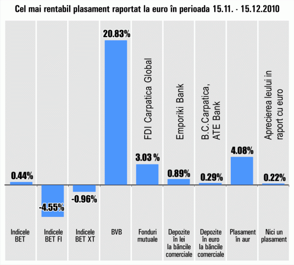 Randamentele plasamentelor analizate la această rubrică sunt raportate la moneda europeană. Randamentele calculate sunt cele mai bune pe fiecare categorie de plasament.