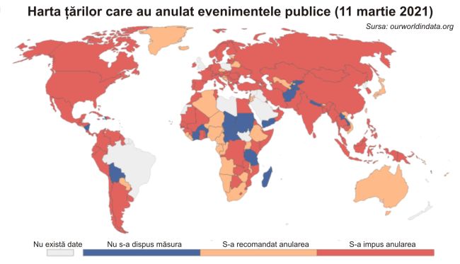 Ziarul BURSA a comparat măsurile impuse de guverne în 11 martie 2020, când OMS a declarat COVID-19 pandemie mondială faţă de cele de la 11 martie 2021.
