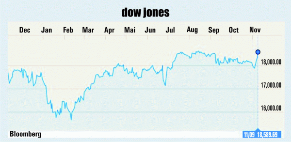 Şi în SUA, acţiunile au crescut ieri, în deschidere, indicele Dow Jones Industrial Average ajungând la un nivel maxim al tuturor timpurilor, pe fondul speculaţiilor legate de politicile lui Donald Trump privind mediul de afaceri.