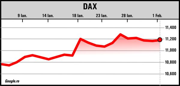 La ora 16.10 (ora României), indicele FTSE 100 al pieţei din Londra a crescut cu 1%, la 7.678,58 puncte, CAC 40 al celei din Paris a scăzut cu 0,7%, la 4.986,43, DAX al Bursei din Frankfurt - cu 0,4%, la 11.135,70.