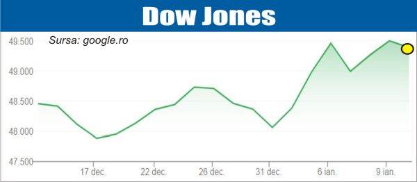 - Indicele Dow Jones Industrial Average a scăzut cu 0,5%, la 49.282,59 puncte la ora 10.36, S&P 500 - cu 0,2%, la 6.955,82 puncte.