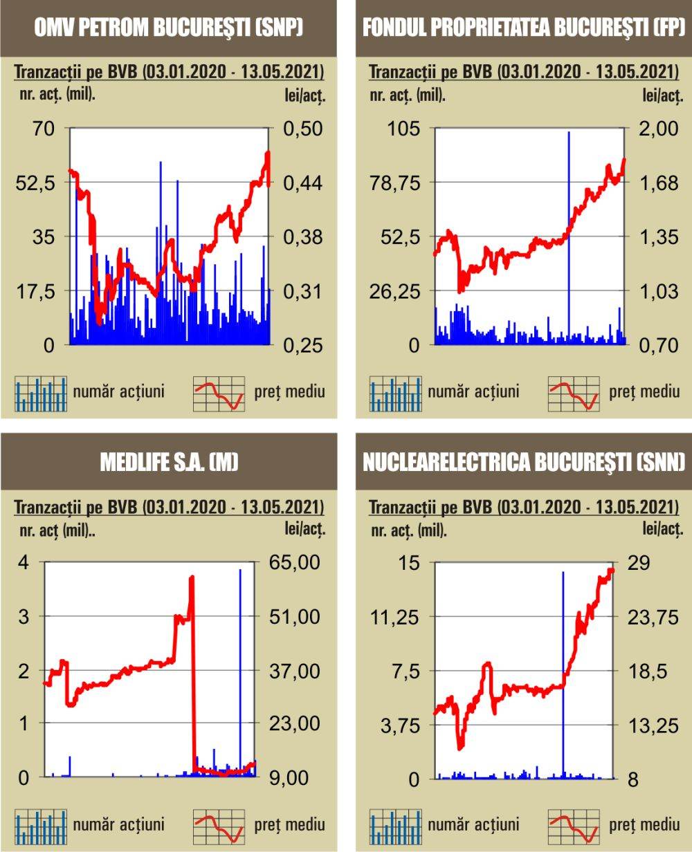 A doua cea mai mare scădere a zilei din rândul componentelor BET a fost înregistrată de acţiunile operatorului BVB, Bursa de Valori Bucureşti (3,41%), care a raportat ieri o scădere a profitului net de 52% după primele trei luni 2021 comparativ cu primele trei luni din 2020. Pe de altă parte, acţiunile MedLife au crescut puternic pe fondul raportării unei creşteri anuale a profitului net după trimestrul întâi din acest an cu 461,9%. De menţionat că numeroase companii de pe segmentul principal de la BVB vor publica astăzi rezultatele financiare pentru primele trei luni ale anului.