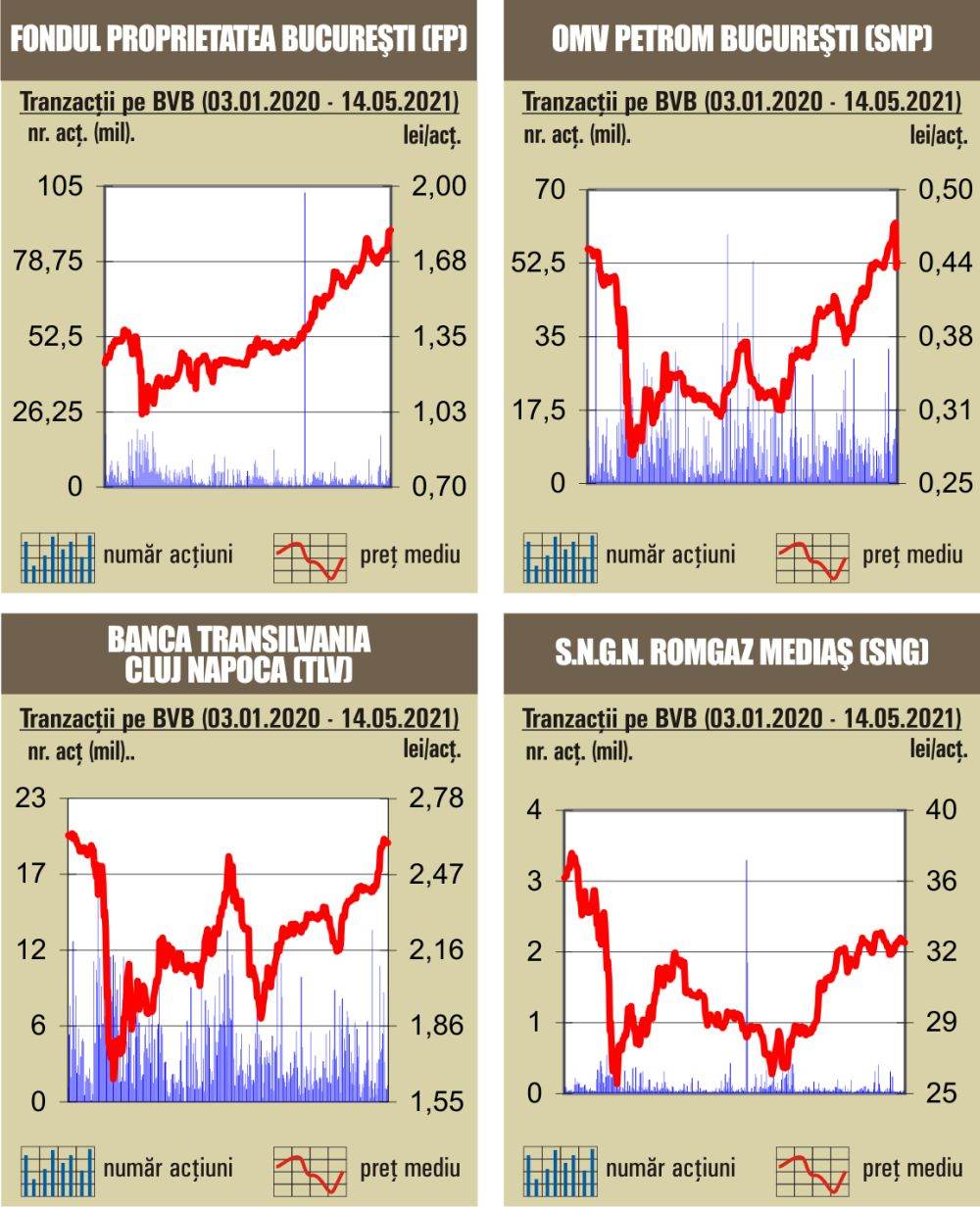 Pe locul al patrulea în acest clasament se găsesc acţiunile Romgaz (SNG), a căror cotaţie a stagnat la 33 de lei, valoarea transferată cu titlurile producătorului de gaze naturale fiind de 1,61 milioane de lei.