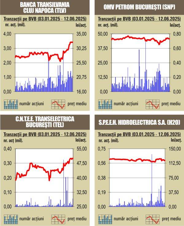 În piaţa "regular", topul valorii transferurilor a fost condus de acţiunile Banca Transilvania, ce au cumulat un rulaj de 35,7 milioane lei, titlurile instituţiei de credit încheind ziua în creştere cu 0,19%, la preţul de 32,3 lei.