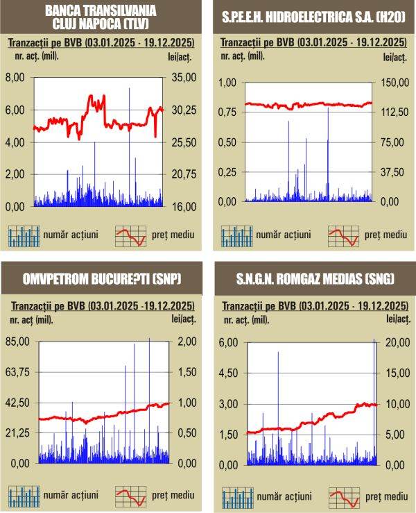 Pe locul al patrulea în topul rulajului de la BVB s-au situat titlurile Romgaz (SNG), care au cumulat schimburi în valoare de 5,8 milioane de lei, acţiunile SNG încheind şedinţa în scădere cu 0,1%, la preţul unitar de 9,76 lei.