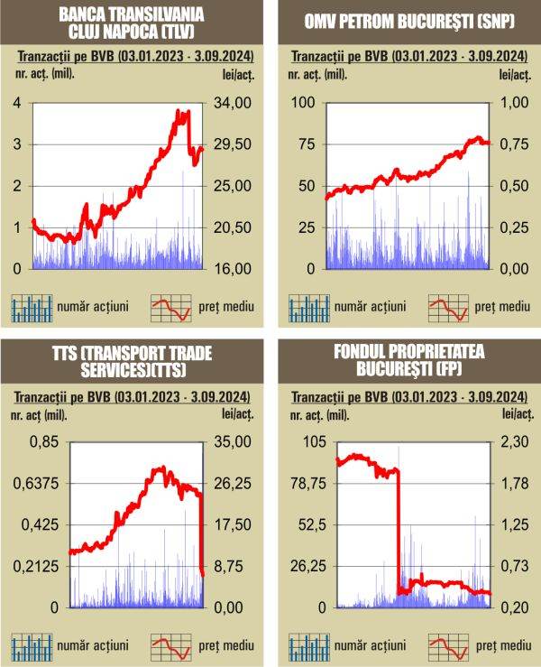 În piaţa "regular", topul lichidităţii a fost condus de acţiunile Banca Transilvania (TLV), ce au cumulat un rulaj de 6,8 milioane lei, titlurile instituţiei de credit încheind ziua la preţul de 28,9 lei, în scădere cu 0,34%.