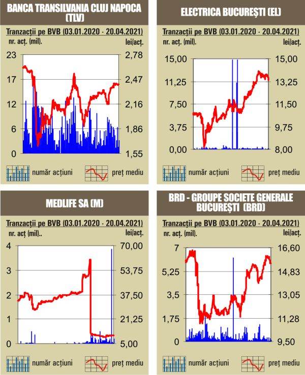 Poziţia a treia a acestui clasament a fost ocupată de titlurile MedLife (M), ce au cumulat schimburi de 2,19 milioane de lei, acţiunile M încheind şedinţa bursieră în scădere cu 0,47%, la preţul 10,5 lei.