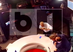 B1 TV a publicat astăzi noi imagini din momentul în care Mirel Palada l-a lovit pe Mihai Goţiu, miercuri seara, în studioul postului de ştiri.