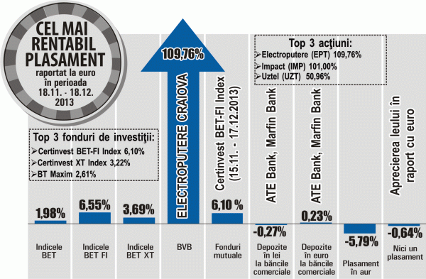 Randamentele plasamentelor analizate la această rubrică sunt raportate la moneda europeană. Randamentele calculate sunt cele mai bune pe fiecare categorie de plasament fără a fi luată în calcul lichiditatea tranzacţiilor. Piaţa Rasdaq nu este luată în calcul.