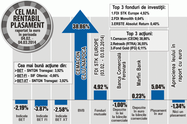 Randamentele plasamentelor analizate la această rubrică sunt raportate la moneda europeană. Randamentele calculate sunt cele mai bune pe fiecare categorie de plasament fără a fi luată în calcul lichiditatea tranzacţiilor. Piaţa Rasdaq nu este luată în calcul.
