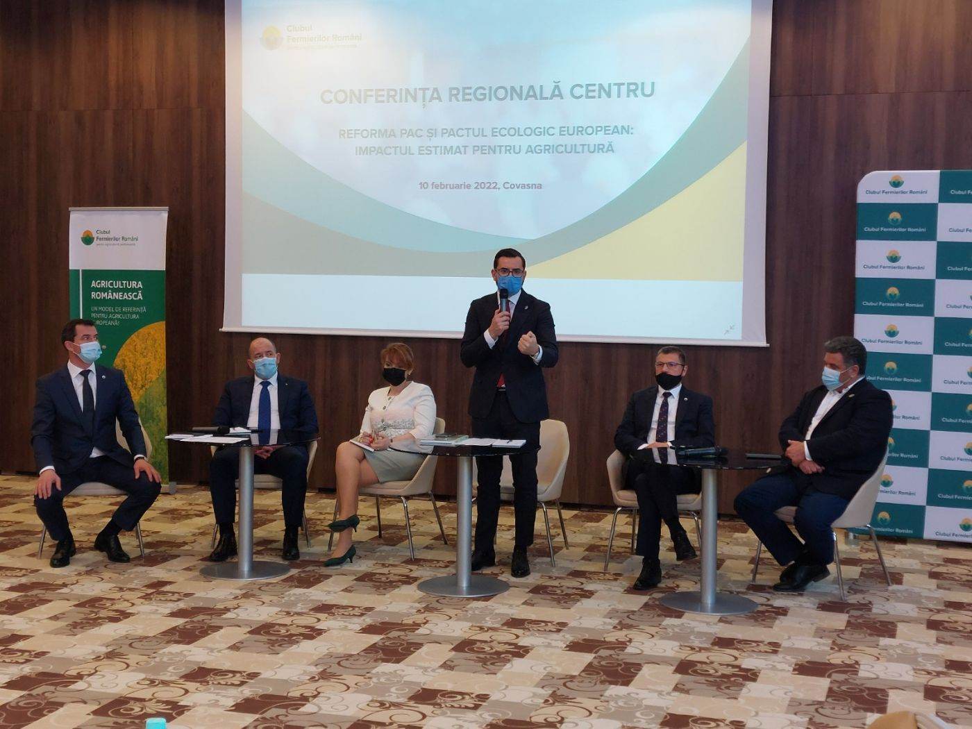 Clubul Fermierilor Români a organizat Conferinţa Regională Centru, în judeţul Covasna, în prezenţa Ministrului Agriculturii şi Dezvoltării Rurale, Adrian-Ionuţ Chesnoiu, a Ministrului Mediului, Apelor şi Pădurilor, Barna Tanczos (prin videoconferinţă) şi a oficialilor responsabili pentru dezvoltarea politicilor şi strategiilor în domeniul agriculturii şi mediului la nivel local, pe teme care au vizat schimbările majore din agricultura românească sub impactul reformei PAC şi transpunerea acesteia la nivel naţional, sub forma Planului Naţional Strategic.