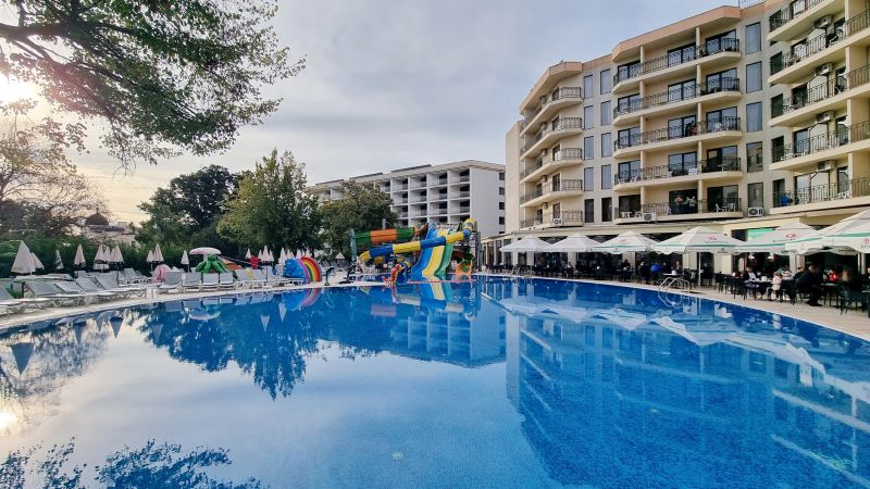 Secretul succesului nu stă doar în infrastructură şi servicii, ci şi în atitudine şi adaptabilitate, un mix pe care Angelica Chirică, director de marketing pentru piaţa românească, îl sintetizează cu claritate: „Raportul calitate-preţ este cel real. Noi oferim exact ceea ce suntem şi avem oferta all inclusive pe tot parcursul zilei. Barurile se deschid la 7:30 dimineaţa, se închid seara la 11:00. Dacă cerinţa este mare, programul se poate prelungi. Programul de masă este unul lejer. Turiştii se pot relaxa. Avem terasele care sunt la dispoziţia turiştilor, atât pe marginea piscinei, cât şi în alte zone ale hotelului. Copiii sunt o componentă importantă pentru noi şi de aceea avem animatori care îi implică pe cei mici pe tot parcursul zilei în diferite activităţi. De aceea, copiii care vin la noi în hotel nu se plictisesc. La fel şi adulţii au program. Dar un punct important este colaborarea cu compania IRI Travel care ne sprijină pentru ca în tot sezonul estival gradul de ocupare a celor 475 de camere din cele două unităţi de cazare să fie 100%. Iar cel puţin jumătate dintre ele sunt ocupate de turişti români. De aceea avem chiar animatori care vorbesc limba română şi care îşi adaptează programul în funcţie de turiştii majoritari. Noi încercăm să oferim aceleaşi servicii pentru toţi turiştii, dar majoritatea câştigă întotdeauna”.
