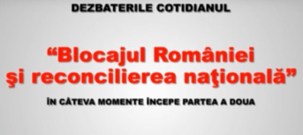 Luni, 14 noiembrie, la Teatrul Metropolis din Bucureşti a avut loc o dezbatere pe tema "Poate depăşi România blocajul actual fără o reconciliere naţională?". Discuţia publică a fost organizată de ziarul "Cotidianul", la iniţiativa Asociaţiei pentru Jurnalism şi Comunicare.