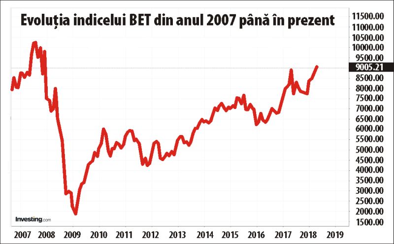Indicele BET, al Bursei de Valori Bucureşti (BVB) a depăşit, în şedinţa de tranzacţionare de ieri, nivelul de 9.000 de puncte, prag pe care principalul coş de acţiuni al pieţei nu l-a mai atins din luna ianuarie a anului 2008, perioadă în care pieţele de capital internaţionale şi, implicit, cea locală, au fost puternic afectate de criza financiară globală.