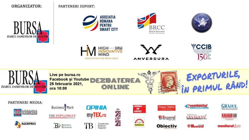 Grupul de presă BURSA a organizat dezbaterea online cu tema "Exporturile, în primul rând!", în data de 25 februarie 2021, începând cu ora 10:00.