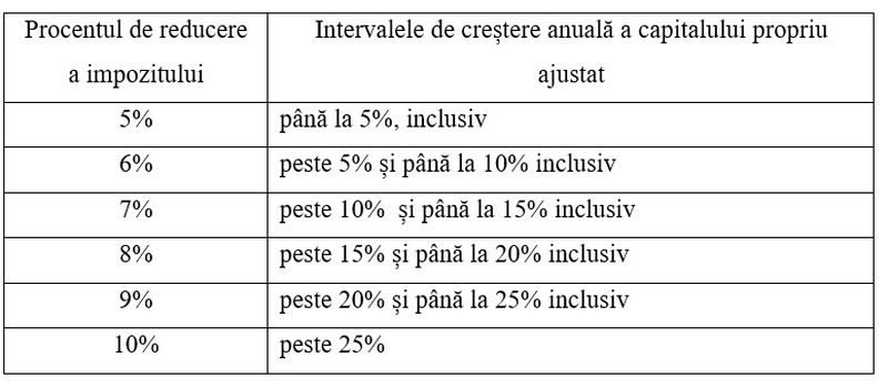 De asemenea, o reducere de impozit cu 3% li se vor aplica firmelor cu capital pozitiv care înregistrează o creştere a capitalului propriu ajustat al anului pentru care datorează impozitul faţă de capitalul propriu ajustat înregistrat în anul 2020, astfel cum arată ce-a de-a doua poză.
