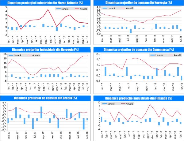 Producţia industrială din Marea Britanie şi-a temperat creşterea anuală în iulie 2018, până la 0,9%, de la 1,1% în luna precedentă, pe fondul unei creşteri lunare sub aşteptări, de 0,1%, după un avans de 0,4% în luna anterioară. Producţia din industria prelucrătoare şi-a temperat creşterea anuală până la 1,1%, de la 1,5% în luna precedentă, în condiţiile unei scăderi lunare de 0,2%, iar producţia de energie şi-a accelerat declinul anual, până la 1,4%, de la 0,1% în luna anterioară, pe fondul unei creşteri lunare de 0,2%.