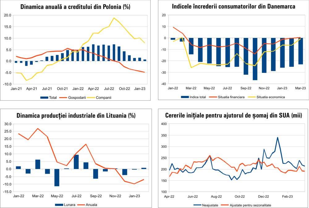 Creditul acordat rezidenţilor din Polonia şi-a temperat creşterea anuală în februarie 2023, până la 0,7%, de la 1,5% în luna precedentă, pe fondul unei creşteri lunare de 0,4%, în condiţiile în care creditul acordat gospodăriilor populaţiei şi-a accelerat scăderea anuală până la 4,9%, de la 4,4% în luna precedentă, pe fondul unei scăderi lunare de 0,4%. Creditul acordat companiilor nefinanciare şi-a temperat creşterea anuală până la 7,9%, de la 10,1%, pe fondul unei creşteri lunare de 0,9%. (NBP)