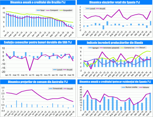 Creditul total din Brazilia şi-a temperat semnificativ creşterea anuală şi în iunie 2016 până la 1%, de la 2,1% în luna precedentă, pe fondul unei scăderi lunare de 0,5%. Creditul acordat companiilor şi-a accelerat declinul anual până la 2,2%, de la 0,4% în luna anterioară, în condiţiile unei scăderi lunare de 1,3%, iar creditul acordat gospodăriilor populaţiei şi-a temperat creşterea anuală până la 4,6%, de la 4,9% în luna anterioară, pe fondul unei creşteri lunare de 0,3%. (sursa: Banco Central do Brasil)