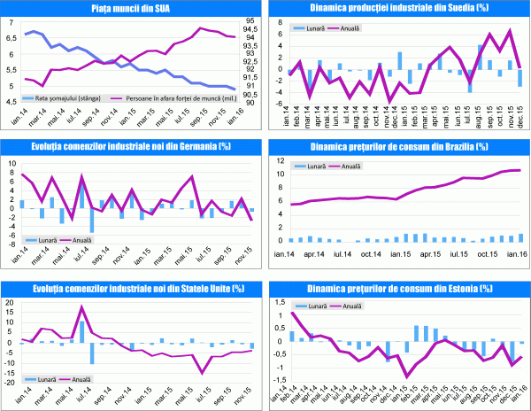 Comenzile industriale noi din Statele Unite şi-au temperat declinul anual în decembrie 2015, până la 3,9%, de la 4,7% în luna precedentă, pe fondul unei scăderi lunare de 2,9%, după o scădere de 0,7% în luna anterioară. Comenzile noi, exclusiv mijloacele de transport, au scăzut cu o rată lunară de 0,8%, după un declin de 0,7% în noiembrie 2015. În 2015 comenzile industriale noi din SUA au scăzut cu 6,6% faţă de anul precedent.