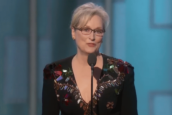 Meryl Streep a spus: "Cea mai emoţionantă prestaţie din 2016 a fost atunci când persoana care a vrut să ocupe cea mai respectată funcţie din ţara noastră a imitat, public, un reporter cu handicap fizic. Mi-a frânt inima atunci când am văzut aşa ceva şi încă nu pot să-mi scot acele imagini din minte, deoarece ele nu proveneau dintr-un film. Proveneau din viaţa reală. Impertinenţa invită la impertinenţă. Violenţa incită violenţă. Atunci când oamenii puternici se folosesc de funcţiile lor pentru a-i intimida şi brutaliza pe ceilalţi, cu toţii avem de pierdut".