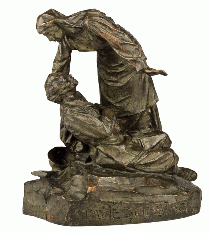 Cu două săptămâni în urmă, Artmark a ţinut licitaţia "Eroii sanitari" în care a oferit diferite obiecte vechi de medicină dar şi fotografii, documente sau medalii. Cea mai scumpă ofertă a fost o statuetă ca un proiect de monument, pe care scrie "Învie şi învinge" şi reprezintă o dramatică infirmieră, cu alura unei mame uscate de suferinţă, care susţine capul unui erou căzut pe câmpul de luptă. Este semnată de Raffaelo Romanelli, un sculptor florentin, fiu de sculptor florentin, care a realizat o mare parte din peisajul sculptural al oraşelor italiene, cu opere de excepţie în Rusia, America şi, deloc pe ultimul loc, România. A venit pe la noi la începutul secolului trecut pentru a realiza statuia lui Barbu Catargiu pe care o putem admira, acum, la poalele Dealului Mitropoliei, în vârful căruia, sub clopotniţă, a fost asasinat, în 1862.