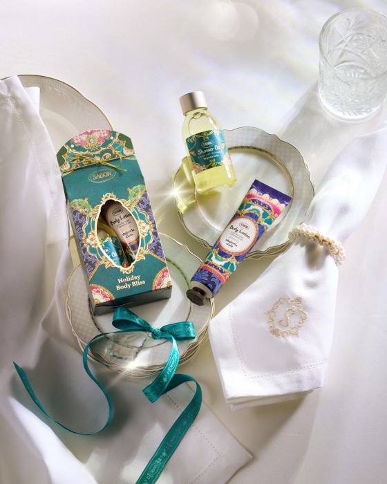 Colecţia include produse clasice SABON reinterpretate pentru această ediţie - ulei de duş, scrub de corp, loţiune de corp, unt de mâini, lumânare parfumată, ulei de baie şi parfum pentru textile. Totodată, sunt disponibile mai multe seturi-cadou, precum Festive Body Care, Holiday Body Bliss şi Glorious Body Ritual, cu produse în format de colecţie.