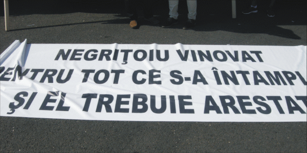 Transportatorii au solicitat demiterea lui Mişu Negriţoiu şi au afişat bannere pe care scria: "Negriţoiu vinovat pentru tot ce s-a întâmplat", "RCA= Falimentul transportatorilor români", "ASF= Mafia. Jos Negriţoiu".