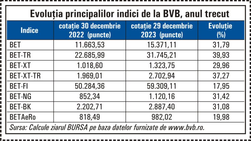 With a nominal increase of the main indices of over 30% and the listing of Hidroelectrica, which increased the chances of our capital market becoming truly emerging, the year 2023 was one of the best in the modern history of the Bucharest Stock Exchange (BVB).
