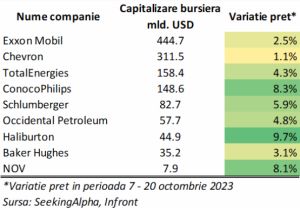 Ultimele evenimente care au tensionat situaţia geopolitică din Orientul Mijlociu, şi anume războiul declanşat în prima parte a lunii octombrie dintre Hamas şi Israel, a creat din nou un mediu prielnic pentru creşterea preţului petrolului, care a ajuns la peste 90 de dolari/baril. Conform opiniei analiştilor de la TD Asset Management, Wall Street poate asista la o creştere continuă a preţurilor în cazul în care în acest război se vor implica şi alte state, cu posibilitatea de a ajunge la un nivel de 150 de dolari/baril.