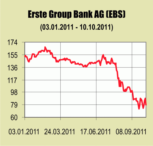 La Bursa de la Viena, acţiunile Erste sunt în scădere cu 17%.